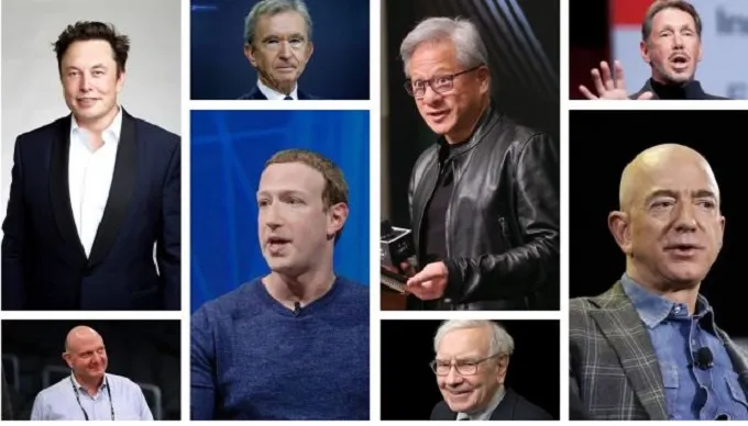 Dẫn đầu danh sách là tỷ phú Elon Musk với 457 tỷ USD, tiếp theo là Larry Ellison (317 tỷ USD), Jeff Bezos (265 tỷ USD), Larry Page (244 tỷ USD), Mark Zuckerberg (229 tỷ USD) và Sergey Brin (228 tỷ USD).