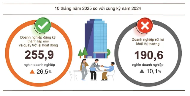Tính chung 10 tháng năm 2025, cả nước có 105.400 doanh nghiệp