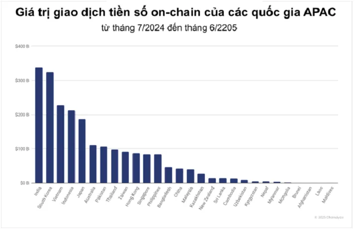 tại APAC. Trong đó Ấn Độ dẫn đầu với 338 tỷ USD. Chainalysis lý giải sự phát