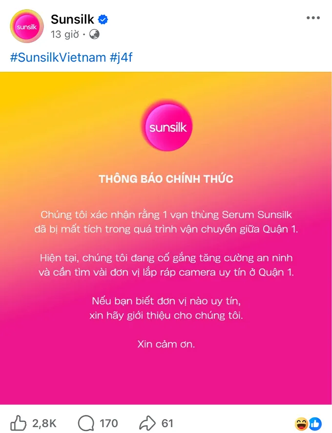 thùng serum Sunsilk trong quá trình vận chuyển giữa Quận 1” và đang tìm đơn