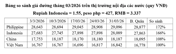 Bảng so sánh giá đường tại một số nước gần Việt Nam.