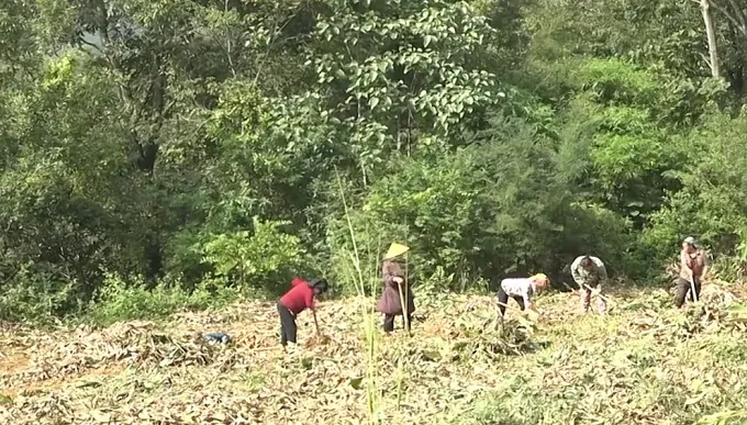 Mùa thu hoạch dong riềng vẫn đang tiếp diễn. Trên những triền
