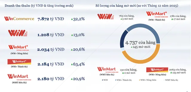 WinCommerce đã mở mới 145 cửa hàng, nâng tổng số cửa hàng lên 4.737 cửa hàng.
