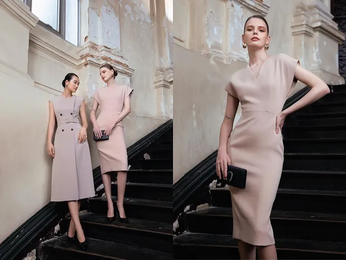 như váy bút chì tôn dáng, váy chữ A dáng dài thanh nhã dựa trên đường cắt tinh