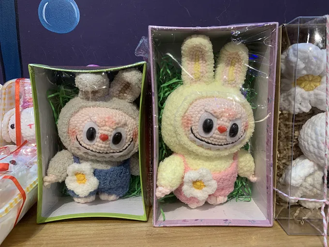 cạnh đó, những sản phẩm baby three, labubu thủ công móc bằng len cũng đang