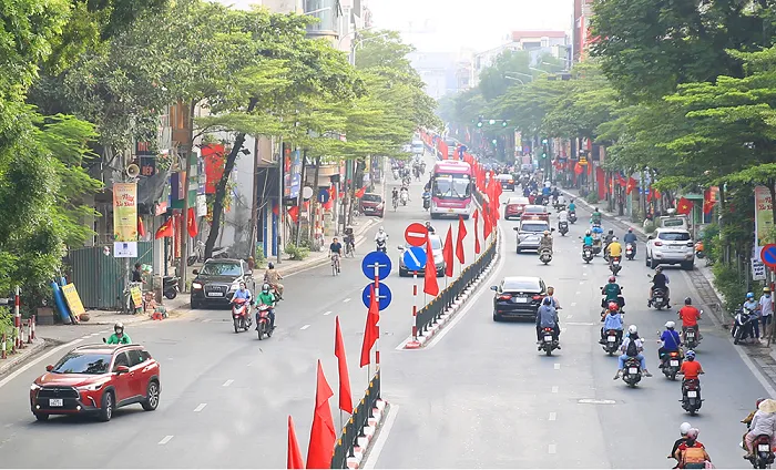 Cờ đỏ sao vàng tung bay phấp phới trên mọi nẻo đường của Thủ đô, chào mừng ngày lễ trọng đại của dân tộc.