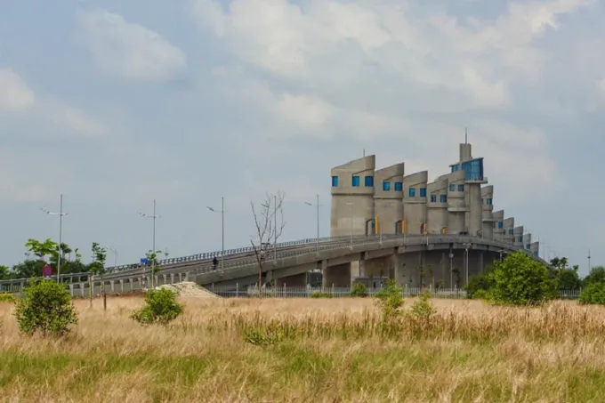 Kết thúc giai đoạn 1 vào năm 2021, Bộ NN&PTNT tiếp tục triển khai giai đoạn 2 của dự án, vốn đầu tư khoảng 2.500 tỷ đồng. Như vậy, tổng vốn đầu tư cả hai giai đoạn đạt trên 5.800 tỷ đồng. Trong ảnh là trụ sở vận hành cống lớn nhất Việt Nam và công viên.