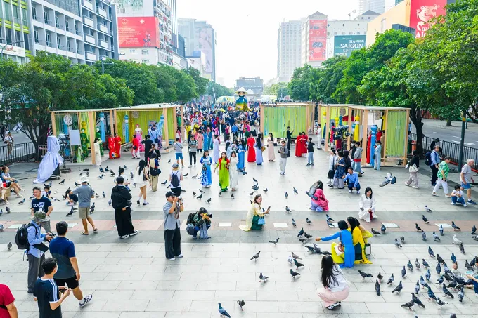 đồng diễn năm nay được tổ chức đồng loạt tại tuyến đường đi bộ Nguyễn Huệ và 35