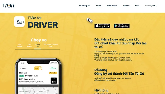 màn hình từ website TADA