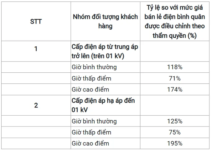 theo Quyết định số 14 của Thủ tướng quy định về cơ cấu biểu giá bán lẻ điện được