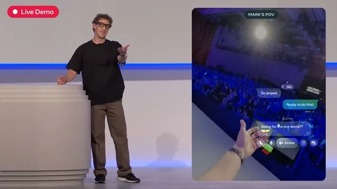 CEO Mark Zuckerberg trình diễn sản phẩm có tên “Meta Ray-Ban Display” tại