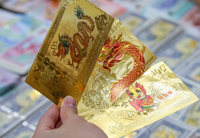 Tùy theo con giáp linh vật của từng năm, vào mỗi dịp đầu năm luôn có những sản phẩm tiền may mắn được giới thiệu ra thị trường. Năm 2024, hình tượng rồng được xuất hiện trên nhiều loại tiền, với nhiều mệnh giá và trên nhiều chất liệu khác nhau. Dịch vụ đổi, bán các tờ tiền lưu niệm lì xì Tết đang bắt đầu sôi động vào những ngày cận Tết Nguyên đán. Năm nay là năm Giáp Thìn - tương ứng với con Rồng trong hệ thống 12 con giáp. Theo quan niệm của người Á đông, Rồng tuy là linh vật không có thật nhưng lại được “chuộng” về độ linh thiêng nhất. Do đó, thực tế cũng nở rộ tiền in hình Rồng từ các nước và được dân mạng chào bán tới tấp trên thị trường nhân dịp Tết Nguyên đán Giáp Thìn 2024. Những tờ tiền này vì được ưa chuộng nên giá đang được đẩy lên khá cao so với giá trị thực.