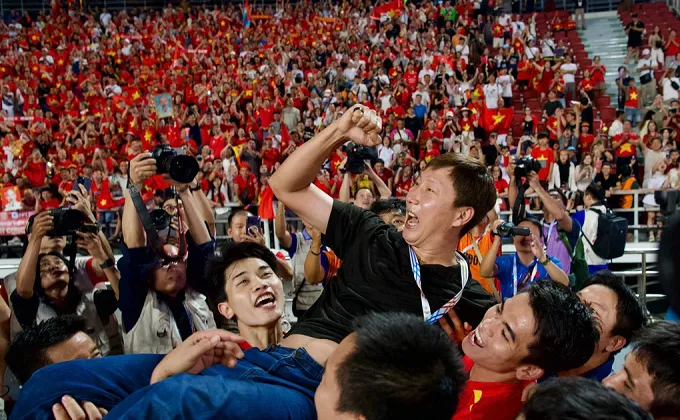 cùng các học trò đã hoàn thành mục tiêu đề ra, mang về tấm HCV bóng đá nam SEA