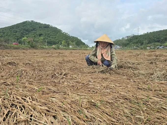 xã Kim Liên, trong tổng số hơn 2.300ha lúa, có tới 1.800ha hư hỏng nặng, chiếm