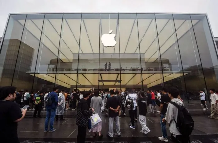 Dòng người xếp hàng bên ngoài một cửa hàng Apple tại thành phố Hàng