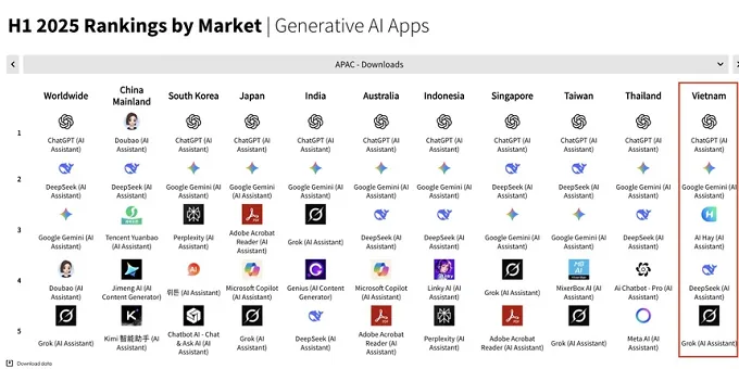 Trong số các app AI được tải nhiều nhất tại Việt Nam, không