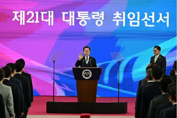 Sáng ngày 4/6, tại sảnh chính trụ sở Quốc hội, tân Tổng thống Hàn Quốc thứ 21 Lee Jae-myung đã chính thức tuyên thệ nhậm chức.
