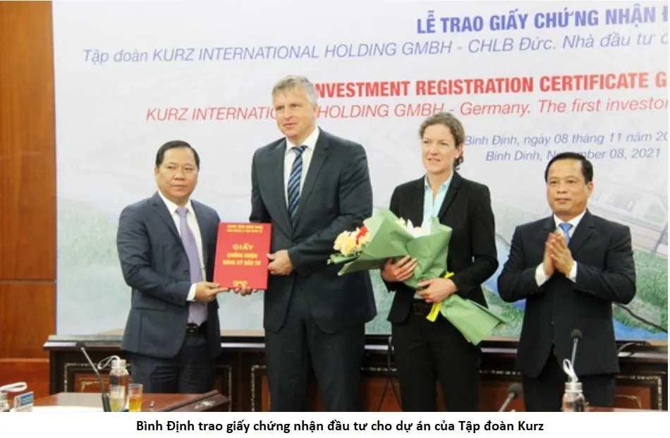 Dự án Nhà máy sản xuất nhũ và màng mỏng công nghệ cao của Tập đoàn Kurz (Đức) là dự án đầu tiên đầu tư vào Khu công nghiệp (KCN) Becamex VSIP Bình Định, có tổng vốn đăng ký đầu tư 40 triệu USD (tương đương 905,1 tỷ đồng).