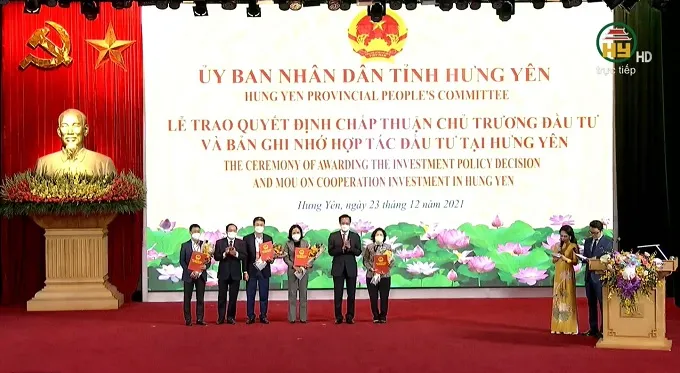 Hưng Yên trao Quyết định chấp thuận chủ trương đầu tư Khu công nghiệp số 01 - giai đoạn 1 cho nhà đầu tư Viglacera Hưng Yên