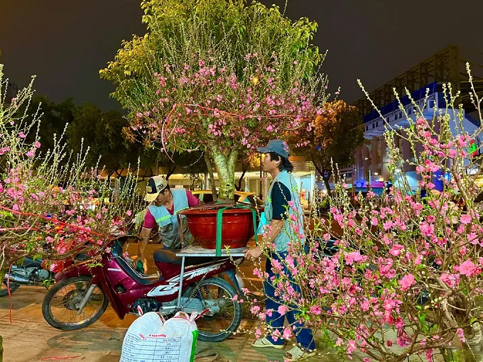 Tiểu thương mang đào Tết vào Tp.HCM bán hết 500 cây, 3h sáng khách vẫn mua