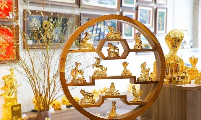 Trước Tết Nguyên đán 2025, nhiều cửa hàng vàng bạc đã tung ra bộ sưu tập 12 con giáp mạ vàng 24K, trong đó linh vật rắn của năm Ất Tỵ được chế tác tinh xảo, thể hiện sự "lột xác" được nhiều người quan tâm.