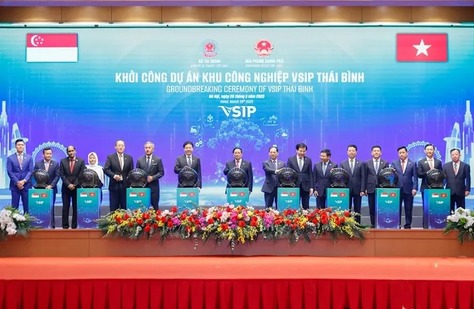 Thủ tướng Phạm Minh Chính và Thủ tướng Singapore Lawrence Wong dự lễ khởi công KCN VSIP Thái Bình