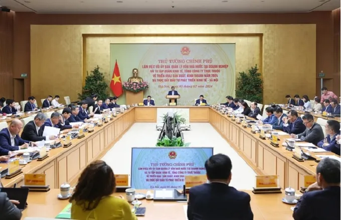 Sáng 5/2, Thủ tướng Phạm Minh Chính chủ trì Hội nghị làm việc với Ủy ban Quản lý vốn Nhà nước tại doanh nghiệp và 19 tập đoàn, tổng công ty trực thuộc về triển khai sản xuất, kinh doanh năm 2024 và thúc đẩy đầu tư phát triển kinh tế - xã hội.