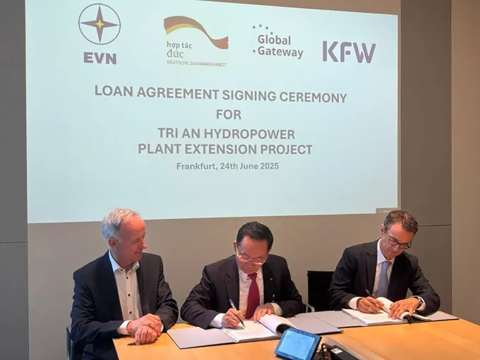 Tập đoàn Điện lực Việt Nam (EVN) đã ký thỏa thuận vay trị giá 65 triệu euro (75,5 triệu đô la) với ngân hàng phát triển nhà nước Đức KfW cho dự án mở rộng Nhà máy thủy điện Trị An vào ngày 24 tháng 6.