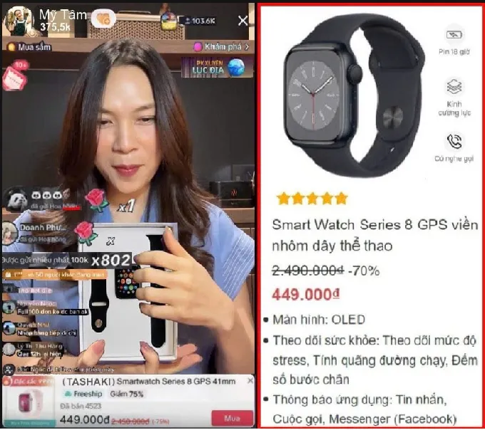 Mặc dù lịch quay show rất bận rộn nhưng ca sỹ Mỹ Tâm vẫn dành thời gian buổi tối livestream kết hợp với thương hiệu đồng hồ hàng đầu Nhật Bản TASHAKI để lên deal 70% cho siêu phẩm Smartwatch Series 8 quốc dân hót nhất từ hãng này, chỉ trong 1 giờ lên sóng doanh thu của hãng đã thu về hơn 10 tỷ đồng.
