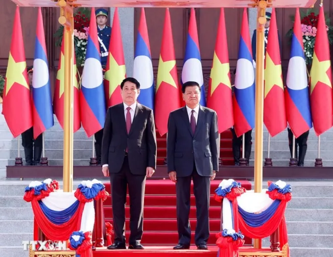 Thongloun Sisoulith đã chủ trì trọng thể lễ đón chính thức Chủ tịch nước Lương